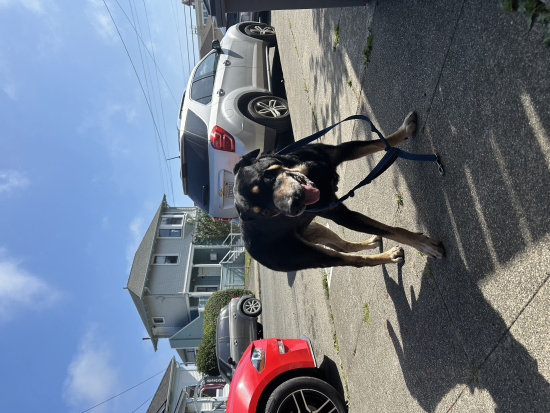 Description | Large black dog with some brown on the face. Maybe a Rottweiler and German Shepard mix. Friendly no collar |