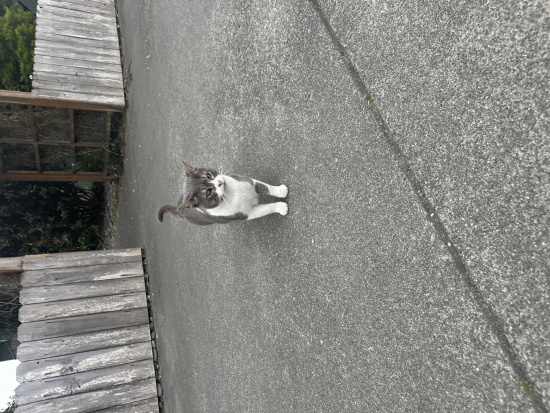 Description | Little grey and white cat roaming around parking lot on Haven Lane in McKinleyville. Seems to be blind in one eye. Very friendly cat. |