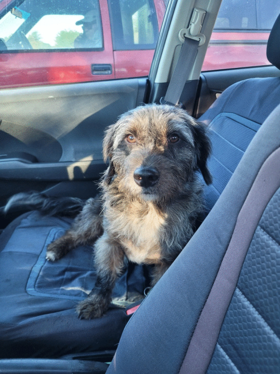Description | Shaggy grey and tricolor dog, medium sized, not neutered and only wearing a flea collar. Very sweet. |