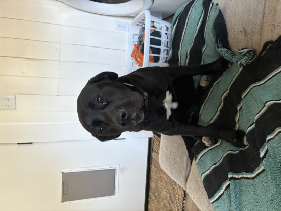 Description | Large black dog with white markings |