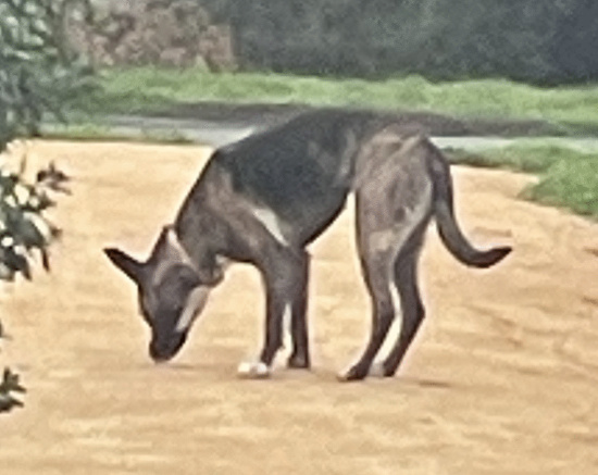 | Description | Lost dog spotted in the road by Valley West Arcata dog park Hallen road. Has a collar. Looks skinny and scared. Was eating out of a trash can. Came close when called but ran away. |