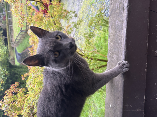 | Description | Youngish gray cat with yellow eyes. Friendly, fearless, hungry, and vocal. He’s been hanging around down graham road in bayside and today walked up to our house and let himself in the cat door. |