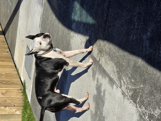 | Description | Has collar and black and white face divide down middle dog could be aggressive possibly defensively Took off up street after confronting another dog on leash went down union toward bhune |