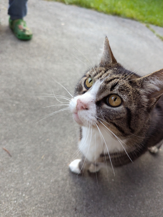 | Description | Older cat (possibly female) with NO TAIL. Very sweet and keeps trying to get into my house in Arcata by the mash |