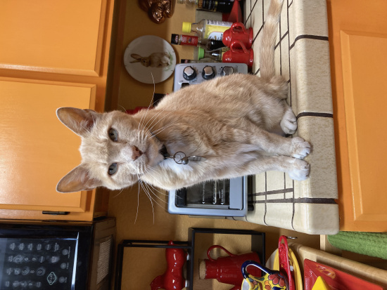 | Description | Leo is an ancient cat. He is very skinny and has lost fur, especially along his spine. He lives near the Myrtle Avenue, Eureka Dollar Tree which he visits frequently. He is very social - people give him treats. Saturday, December 27, 2025 he slipped his collar which has his name and his home phone number. I am concerned that someone took him home thinking he was a starving cat or took him to a shelter. |