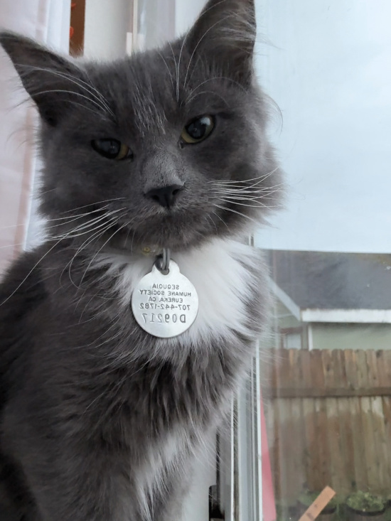 | Description | Noelle is a grey and white medium length hair kitten. She has a white chest and four white paws. She sometimes goes into the garage and we think she got outside before we locked the doors for the night. She does not have her collar on. She curious and very affectionate when held. |