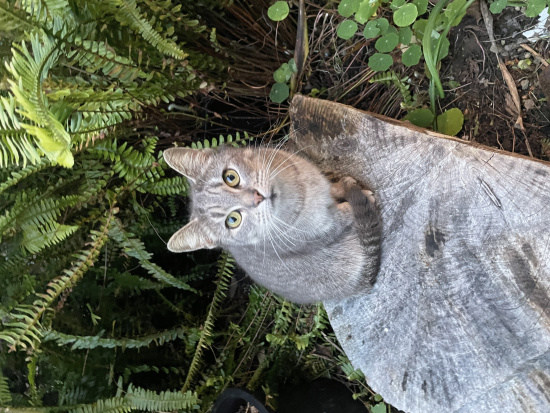 | Description | Short haired gray Tabby showed up a few weeks ago on our lane near the end of 18th Street near Quaker St, in Myrtletown. She seems to be acquainted with a long-hair gray cat that showed up a few weeks before her. We live near a wooded area.The cats are friendly and appear to be healthy. |
