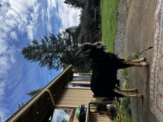 | Description | A black and tan goat followed us on our walk back to the parking lot today in the Arcata community forest today. Is anyone missing this friendly guy? |