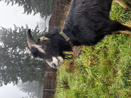 | Description | Found goat! Found on Sunday in the forest above redwood park. Very friendly |