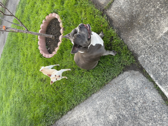 | Description | Two dogs walked into our yard, one bull dog, one tan chihuahua! |