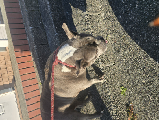 | Description | Older blue and white female bully, a little on the thick side. Super sweet walking up W. Wabash close to the Stop and Shop. No collar. |
