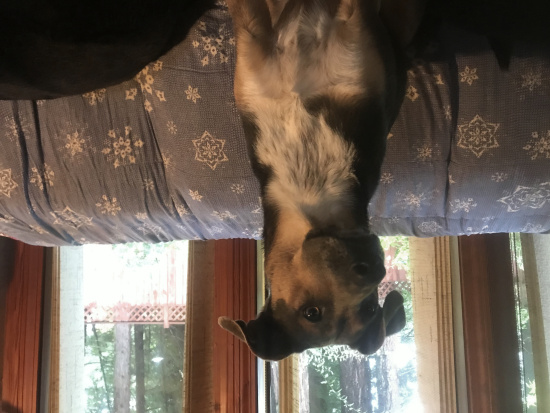 | Description | 45-50pounds, rangy wippet/runner type. Very friendly, neutered male. He got skunked and bolted, slipped his collar. |
