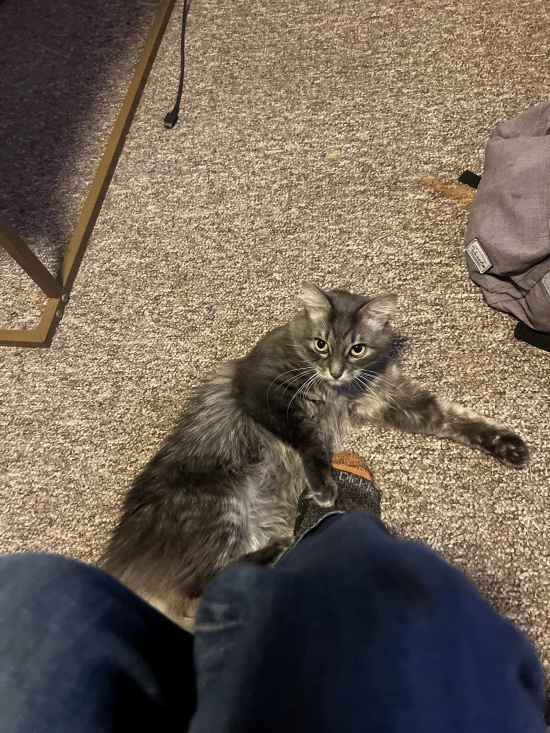 | Description | My cat is grey, long haired, fluffy cat that ran away after his owner died off of Washington and California. He was only an indoor cat and has never been outside nor in rain. |