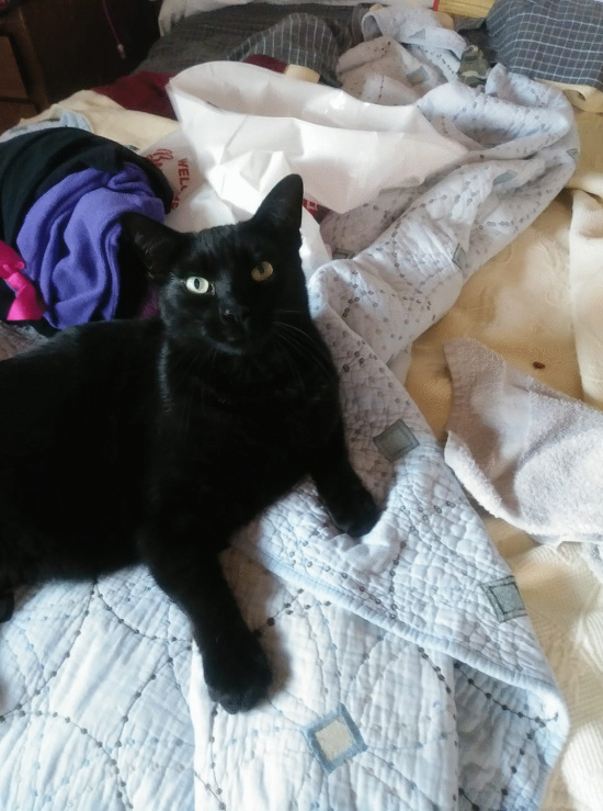 | Description | Blackberry is a very sweet cat. He is all black with gold eyes, he has a bald spot on his left back side. He is an indoor/outdoor cat but doesn't venture far from home. |