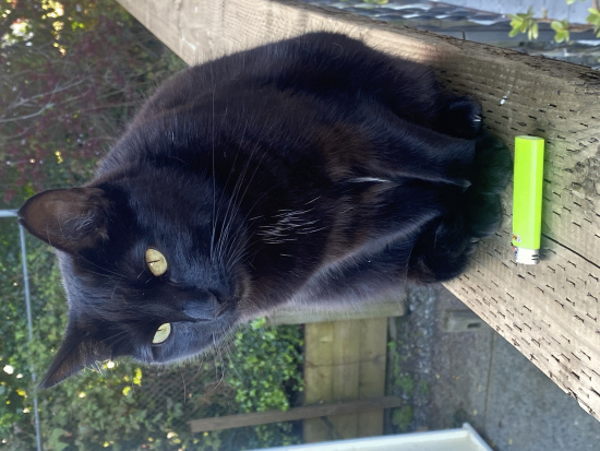 | Description | Found at top of H Street. Short tail with bent tip. Vocal, and extremely friendly. Black collar. |