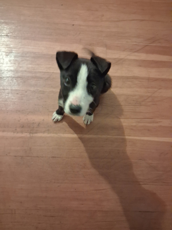 | Description | Cute little female pup found wander up my driveway. Maybe around 2–3-months-old. Black with little white on head and belly and paws. |