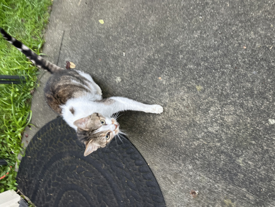 | Description | Friendly cat, looking for shelter in the Jane’s creek neighborhood in Arcata. The cat is skinny, and has a spot of black on its left back shoulder. |