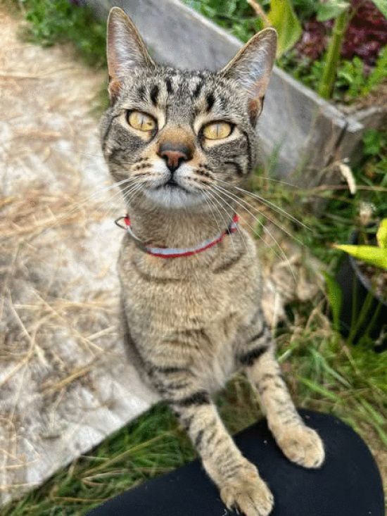 | Color | Tan and black striped tabby ca |