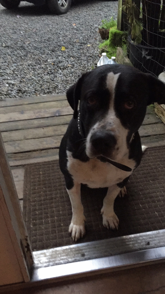 | Description | Very sweet, medium size black and white intact male dog. Probably about a year or two old. |